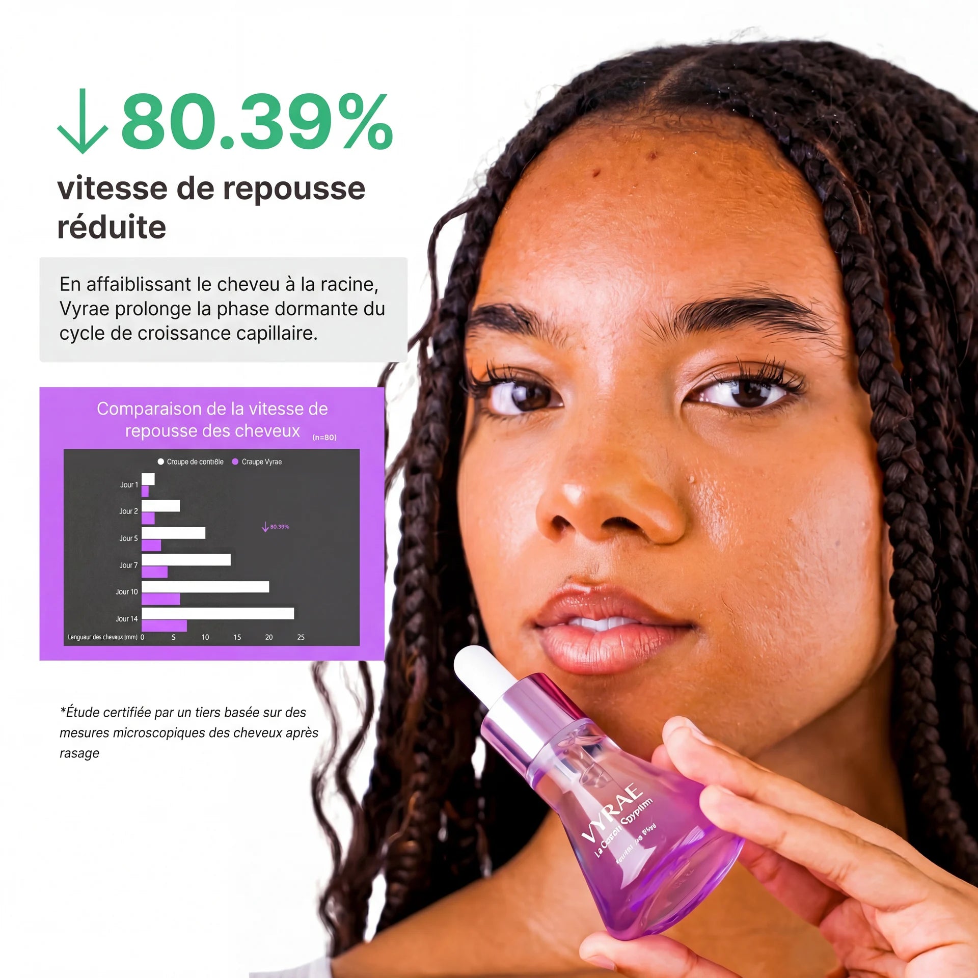RÉDUCTION VISIBLE DE LA PILOSITÉ EN 30 JOURS
